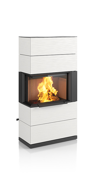 Plenty of room for the beautiful dancing flames. That makes the impressive PADUA a very unique stove. Its sophisticated design concept includes a sliding door that conveniently and easily opens upwards. The matching shelf system not only provides plenty of space to store wood, it can also be used for side connections to the chimney flue. The handcrafted ceramic in elegant textures and selected colours enhance the exclusive appearance of this special stove. Upon request, the PADUA can be equipped with a heat-retaining block. It is available in two heights.